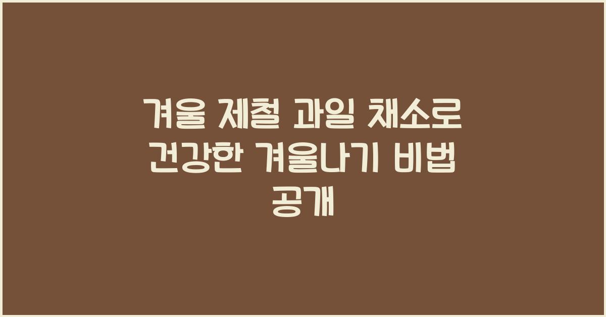 겨울은 자연이 제공하는 맛있는 과일과 채소들이 풍성해지는 계절입니다. 제철 과일과 채소는 그 자체로 영양가가 높고 건강 효능이 뛰어난데요, 특히 겨울철에는 면역력 강화를 위해 필수입니다. 개인적으로 저는 매년 겨울이 오면 제철 과일 채소를 통해 건강관리를 하곤 하는데, 여러분도 색다른 방법으로 건강을 챙기길 바랍니다. 여러 해를 거치며 알게 된 경험을 여러분과 나눌게요!