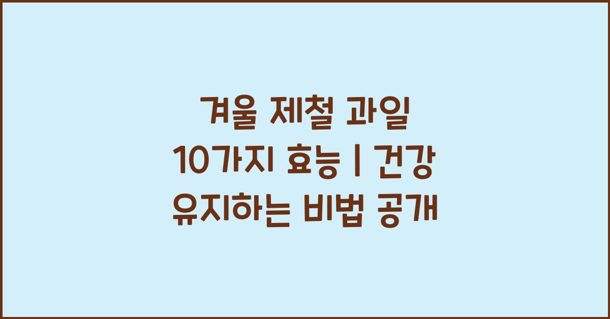 겨울철이 오면 우리는 따뜻한 음식을 찾게 되지만, 특히 이 시기에 제철 과일의 섭취는 건강에 많은 이점을 가져옵니다. 겨울 제철 과일 10가지 효능 | 건강 챙기는 똑똑한 선택 이야기를 시작해볼까요? 겨울 과일은 다양한 영양소가 풍부하고 면역력을 높여주는 데 도움이 됩니다.