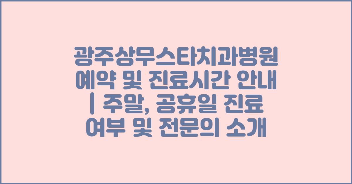 Q1: 광주상무스타치과병원은 주말에 진료하나요?