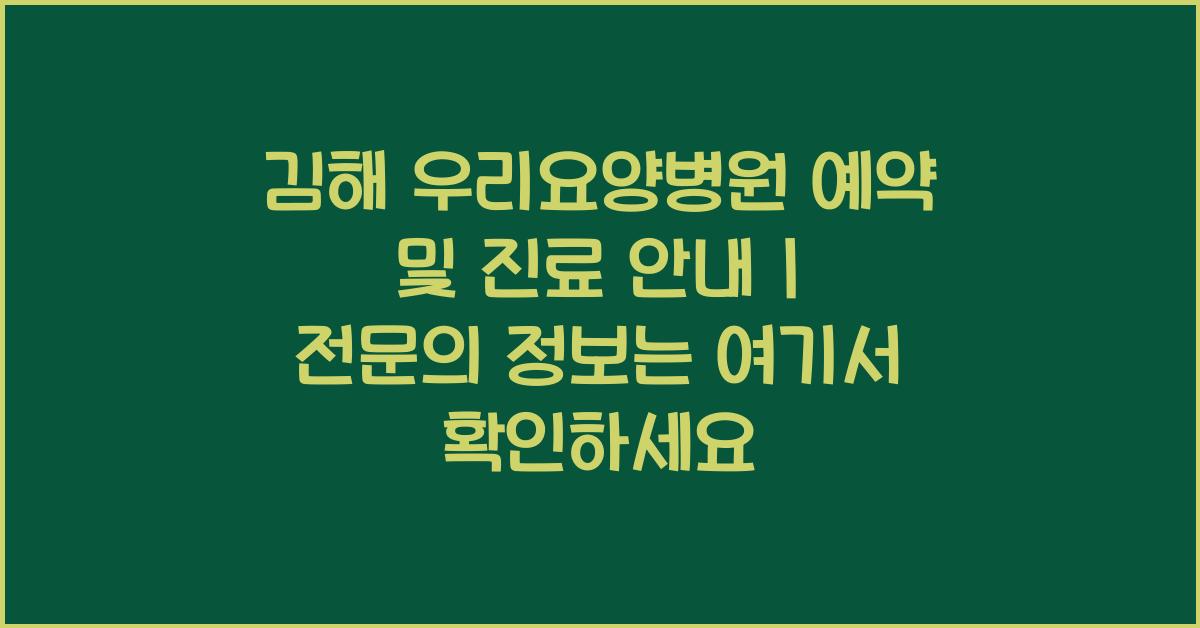 📅 김해 우리요양병원 예약 방법