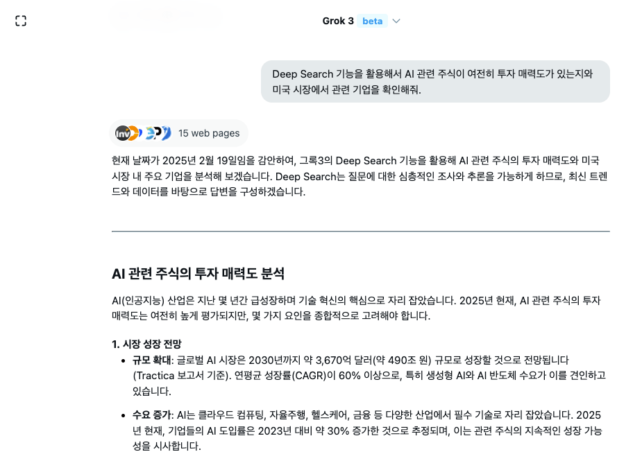 - 그록3는 AI 기반의 심층 검색 기능을 제공하여, 복잡한 데이터 분석을 간편하게 수행할 수 있습니다.