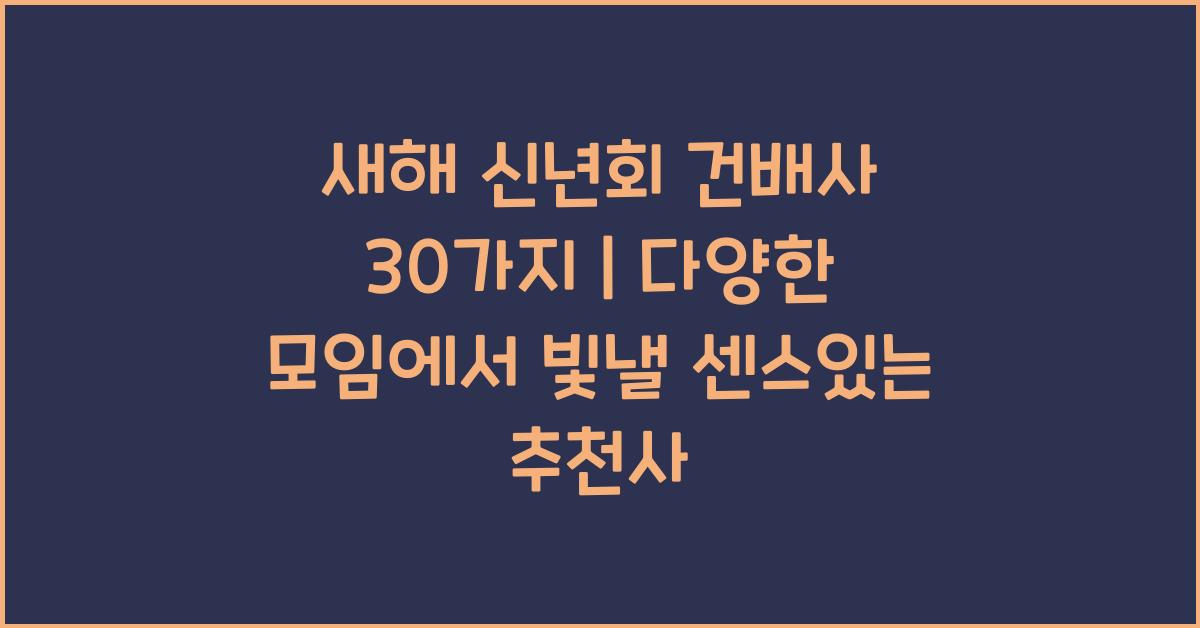 새해가 되면 많은 사람들이 신년회를 계획합니다. 이 자리에서 빠질 수 없는 것이 바로 건배사입니다. 건배사는 단순한 음료의 소리 이상으로, 함께 하는 이들과의 유대를 강화하고 희망의 메시지를전달하는 중요한 역할을 합니다. 지난 몇 년간의 어려움을 뒤로하고, 새롭게 시작하는 2024년을 기념하는 건배사를 통해 모두의 마음을 하나로 모아보세요. 새해 신년회 건배사 30가지 | 센스있는 건배사 모음을 통해 파티의 분위기를 한층 끌어올릴 수 있습니다.