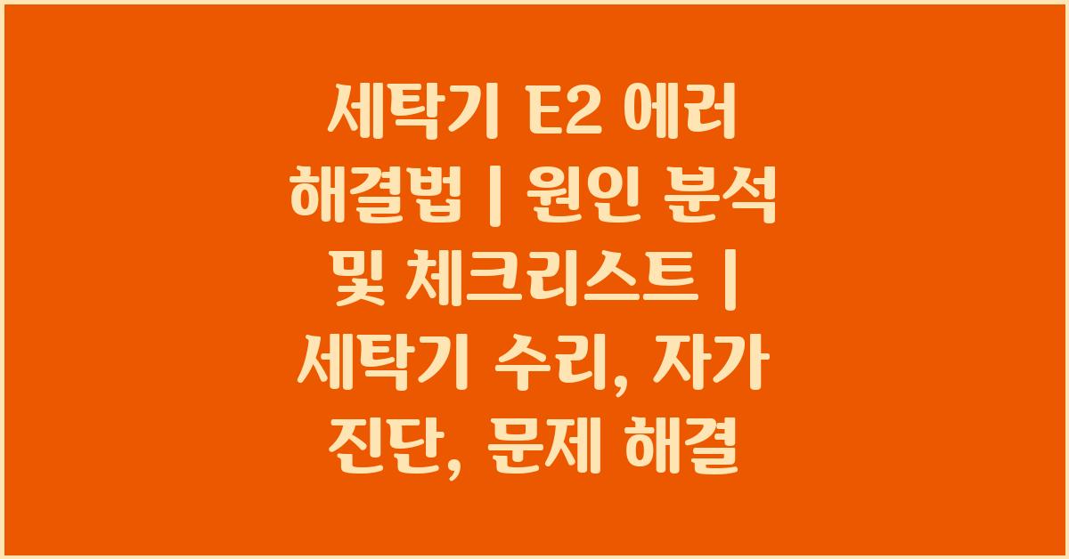 세탁기를 사용할 때 가장 짜증나는 에러 중 하나가 바로 세탁기 E2 에러입니다. 세탁기 E2 에러는 많은 가정에서 흔히 발생하는 문제로, 세탁 중 갑자기 나타나기 때문에 매우 당황스러울 수 있습니다. 이 문제가 발생하면 세탁기를 사용하지 못하게 되는데요, 우리가 일상적으로 이용하는 세탁기가 고장 나면 그만큼 불편함이 크죠. 이번에는 세탁기 E2 에러의 원인과 해결 방법에 대해 자세히 알아보겠습니다. 여러분도 이러한 경험 있으시죠? 아니면 세탁기를 수리해야 할 시점이 올지도 모른답니다.