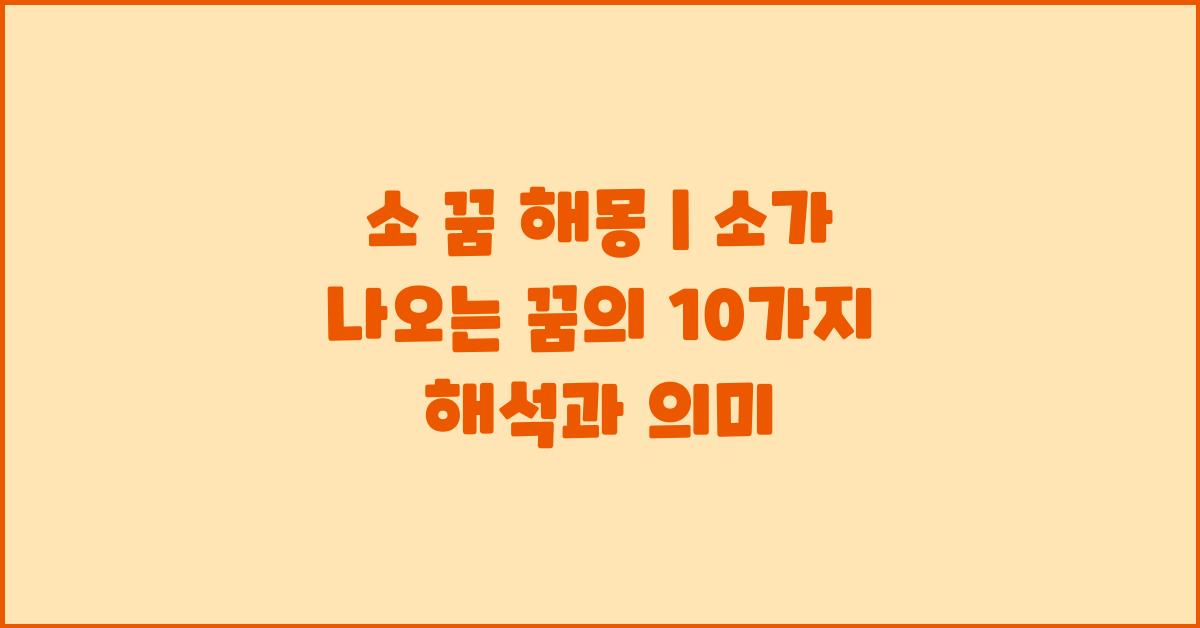 사람들은 종종 꿈을 통해 자신의 감정을 들여다보고, 숨겨진 의미를 발견합니다. 소 꿈 해몽 | 10가지 꿈 해석과 의미는 그중에서도 많은 이들에게 통찰을 주는 특별한 영역입니다. 꿈의 해석은 복잡하고 다양하지만, 여러분의 삶에 도움이 될 만한 유익한 정보가 되었으면 좋겠습니다. 꿈을 통해 내일의 안정과 행복을 꿈꿔보세요!