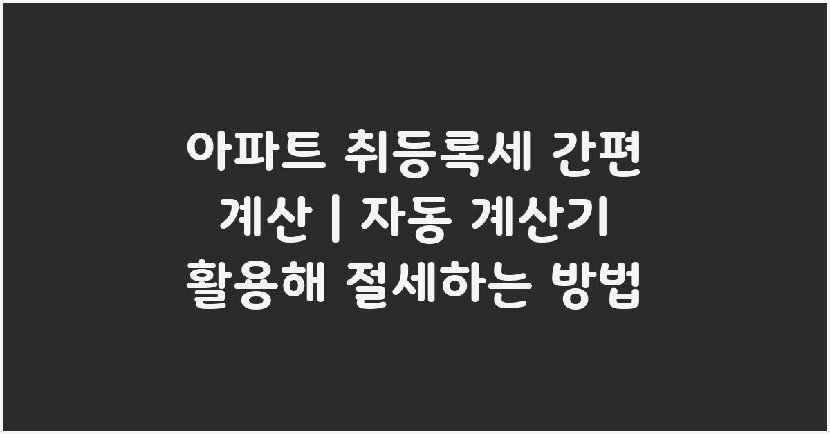 아파트 취등록세 간편 계산 | 자동 계산기 활용법을 통해 여러분이 절세하는 데 도움이 되셨길 바랍니다. 간편한 계산기를 통해 복잡한 세금 문제를 손쉽게 해결할 수 있습니다. 실제로 사용해본 분들이 많으니 믿고 사용하세요. 언제나 재미있고 유익한 세금 관련 정보가 여러분과 함께 하길 바랍니다!