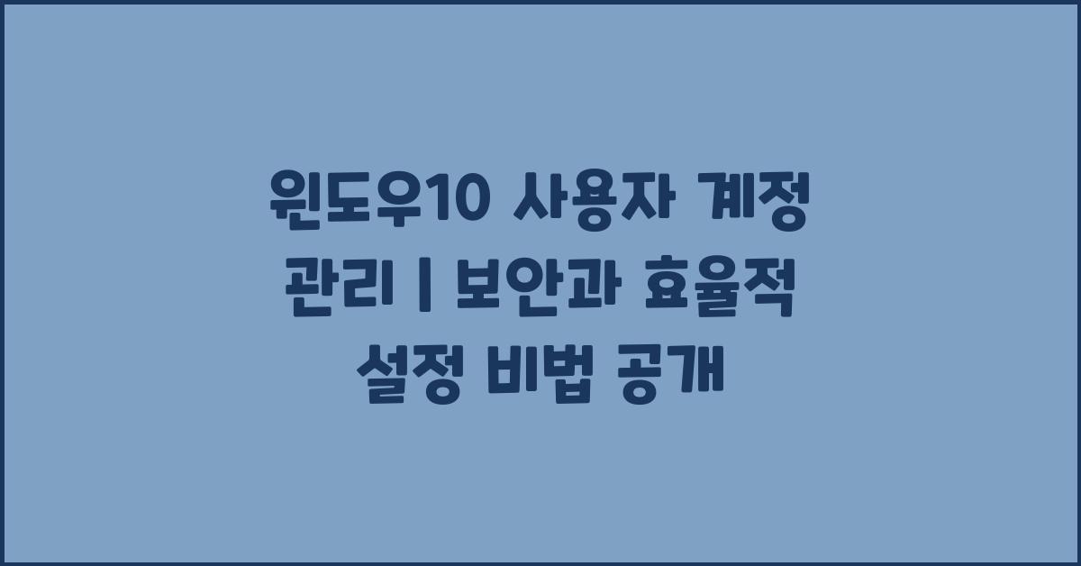 🔧 윈도우10 사용자 계정 관리 | 보안 및 효율적인 설정 방법
