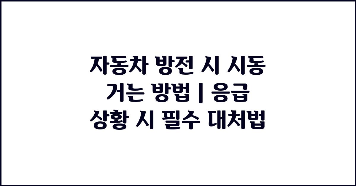 자동차 방전 시 시동 거는 방법 | 응급 상황 대처법을 잘 숙지해 두면, 이와 같은 갑작스러운 상황에서 더욱 준비된 운전자가 될 수 있습니다. 안심하고 자동차 운전하세요!