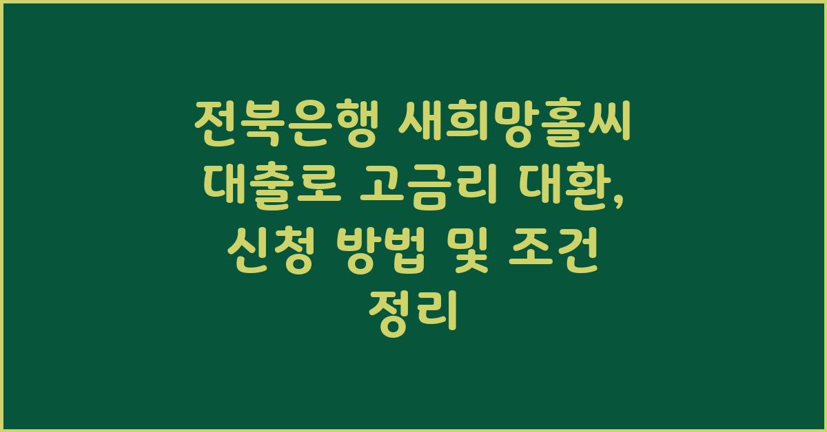 전북은행 새희망홀씨 대출은 고금리에 시달리는 차주들에게 희망의 씨앗이 되어주는 특별한 대출 상품입니다. 개인적으로 생각해보면, 많은 사람들이 금융에 대한 고민을 매일 안고 살아가며, 대출의 필요성을 느끼게 되죠. 그럴 때 앞서 언급한 전북은행의 대출은 정말 많은 이들에게 도움이 될 수 있습니다.