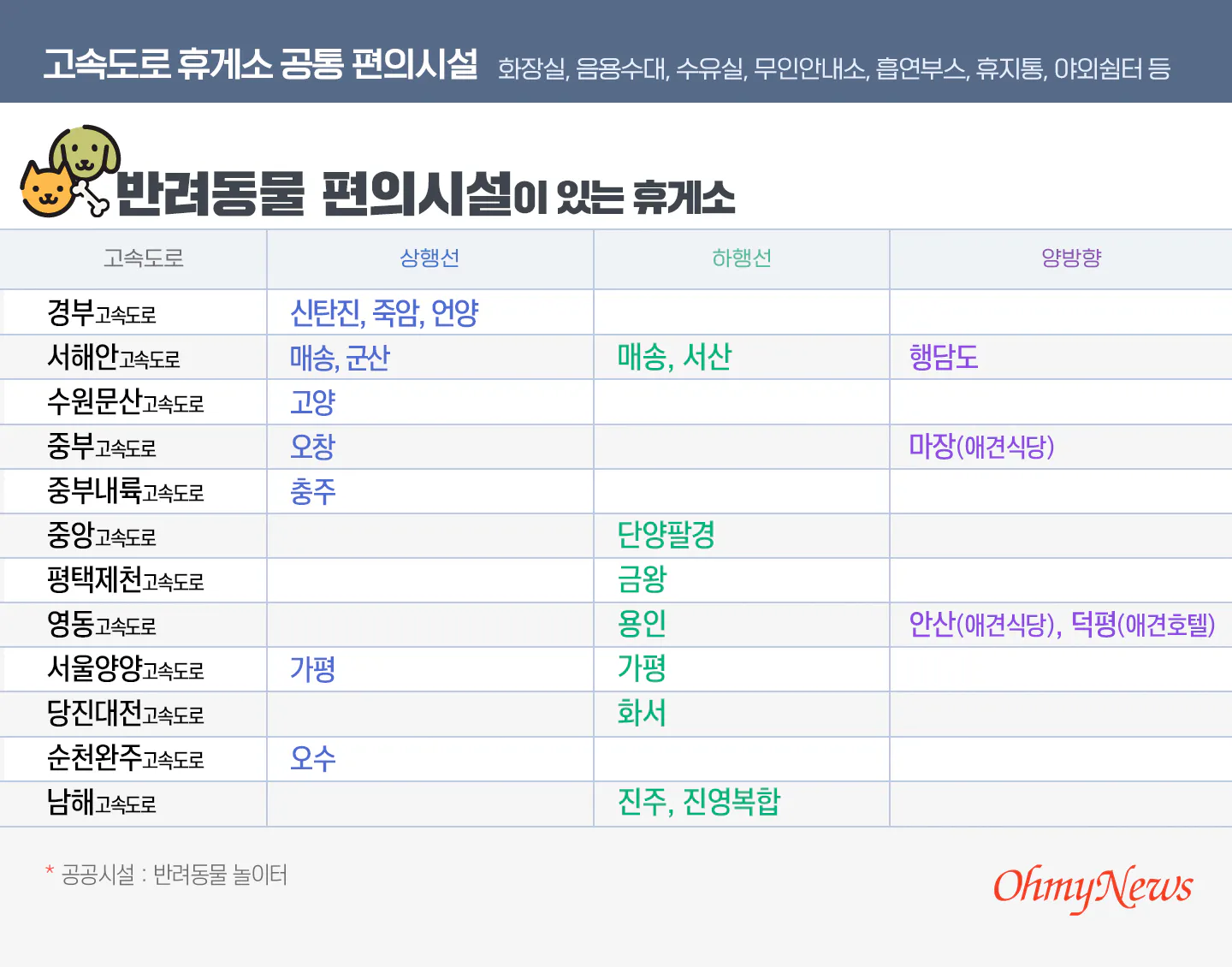 반려동물과 함께하는 여행객들을 위한 편의 시설도 점점 늘어나고 있습니다. 반려동물과 함께 즐거운 추억을 만들 수 있는 휴게소를 찾아보세요.