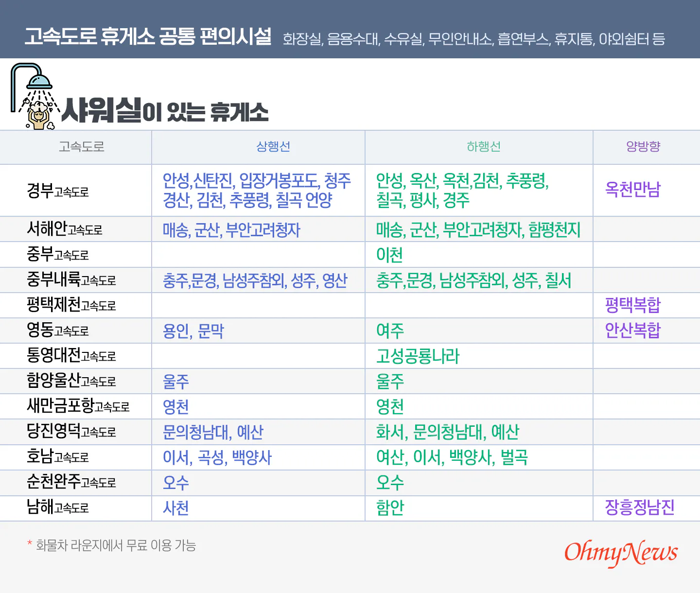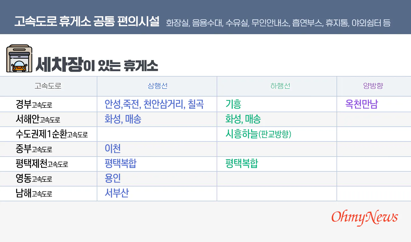 오랜만에 부모님을 뵙는데 꼬질꼬질한 차로 갈 순 없겠죠? 세차장이 있는 휴게소에서 깨끗하게 세차하고 기분 좋게 고향에 도착하세요. (단, 대부분 수도권에 위치해 있으니 미리 확인 필수!)