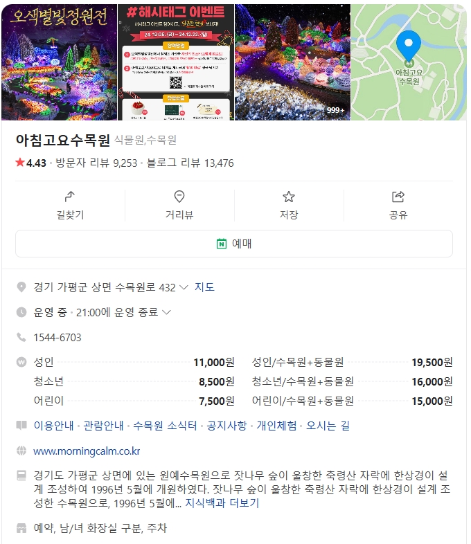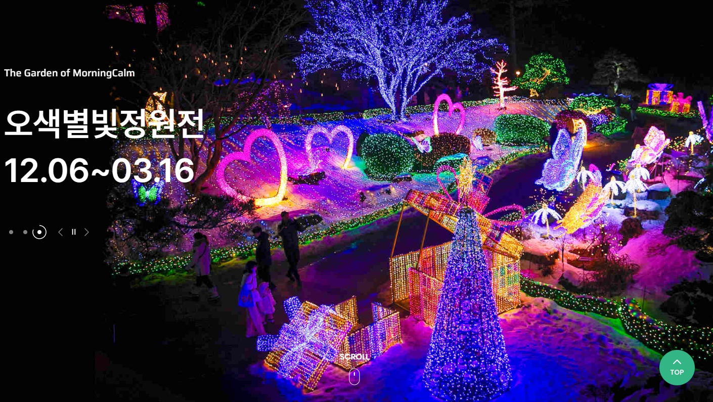 아침고요수목원은 겨울철에도 아름다운 자연을 만끽할 수 있는 곳이에요. 크리스마스 시즌에는 특별한 조명과 함께 겨울의 아름다움을 느낄 수 있는 다양한 프로그램이 마련되어 있어요.