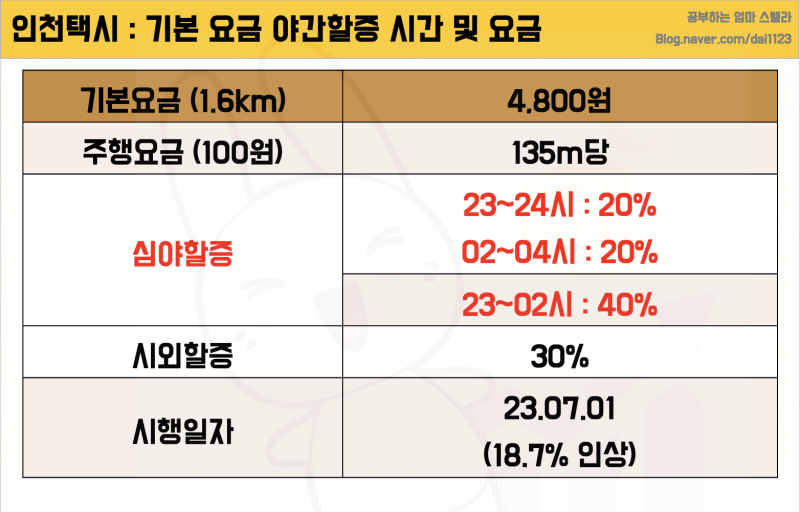 3. 인천의 택시 요금 및 할증시간