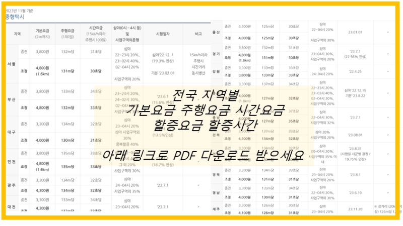 #택시요금 #서울택시 #인천택시 #경기도택시 #부산택시 #대전택시 #할증시간 #택시요금인상 #대중교통