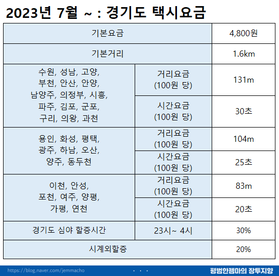 4. 경기도의 택시 요금 및 할증시간