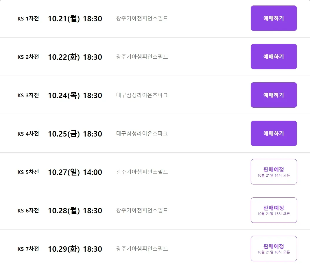 - 예매 방법: 인터파크 웹사이트에서 '한국시리즈' 검색