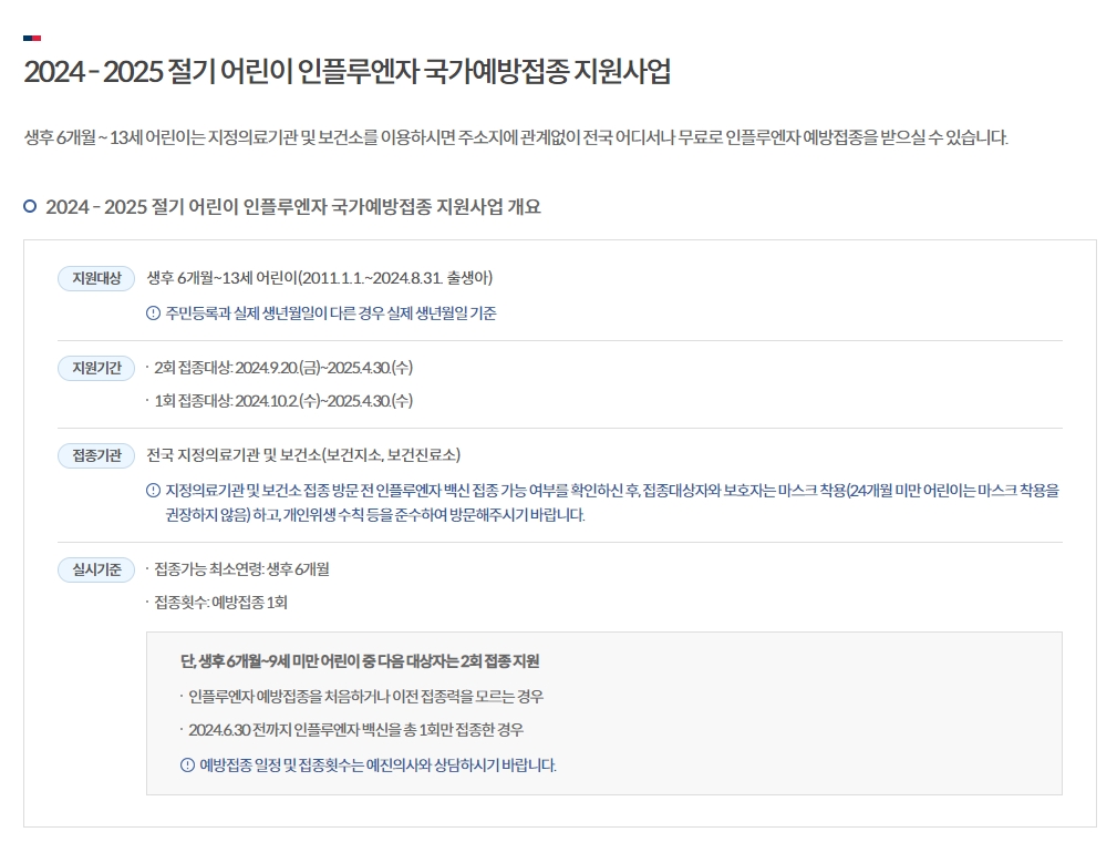 - 어린이 : 생후 6개월부터 13세까지 (2011년 1월 1일 ~ 2024년 8월 31일 출생자)