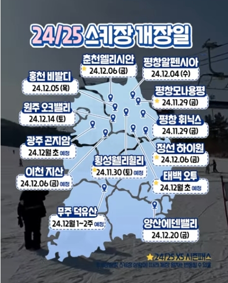 2024/2025 전국 스키장 개장일 총정리 (+X5 시즌패스) - 여행톡톡