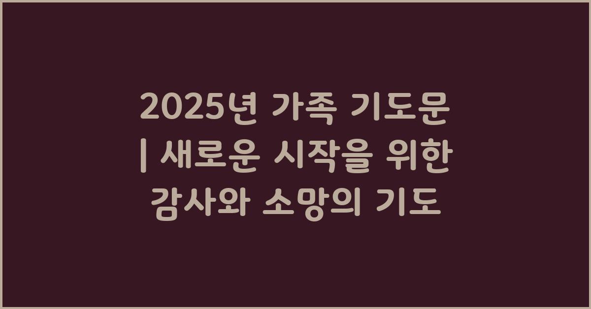 이처럼 기도를 통해 감사와 소망을 나누는 과정은 우리 가족의 유대를 더욱 단단하게 만들어 줍니다. 2025년 가족 기도문 | 감사와 소망을 담은 기도문을 통해, 가족 모두가 원하는 것들을 나누고 서로 응원하는 시간이 되기를 바랍니다. 그 기도문을 통해 나누는 소망이 현실에서 이루어질 수 있도록 다짐해보세요.
