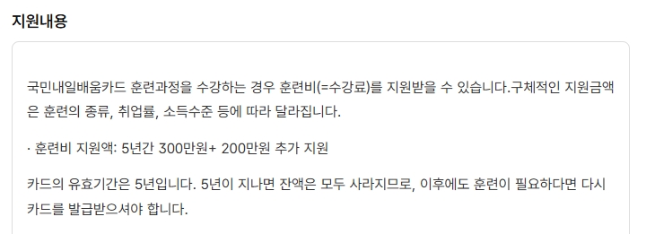 | 만 18세 이상 성인 | 최대 500,000원 | 지원IT 교육, 외국어 교육 |
