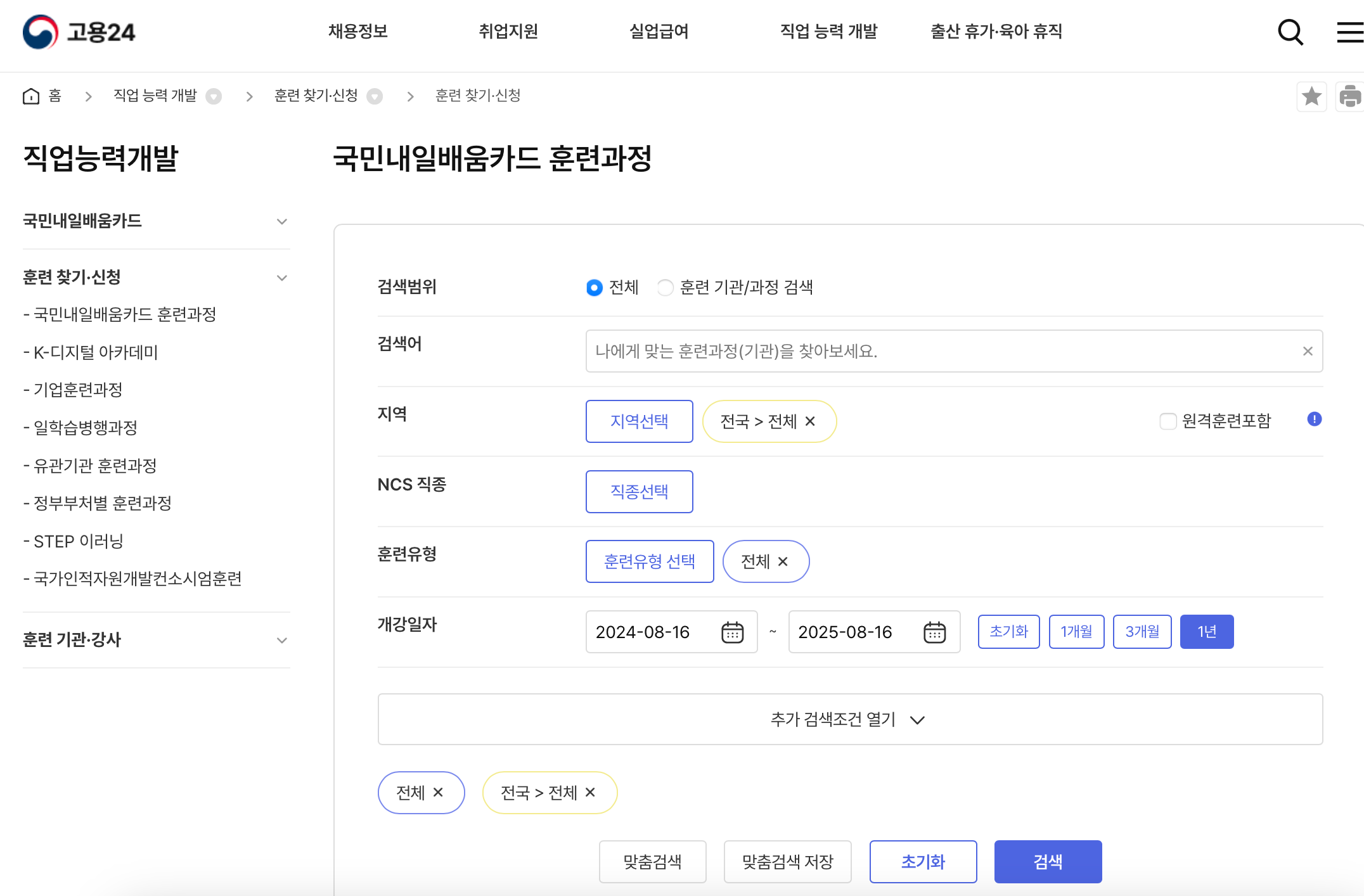 [4] 고용24 - 국민내일배움카드 훈련과정 (https://m.work24.go.kr/hr/a/a/1100/trnnCrsInf.do)