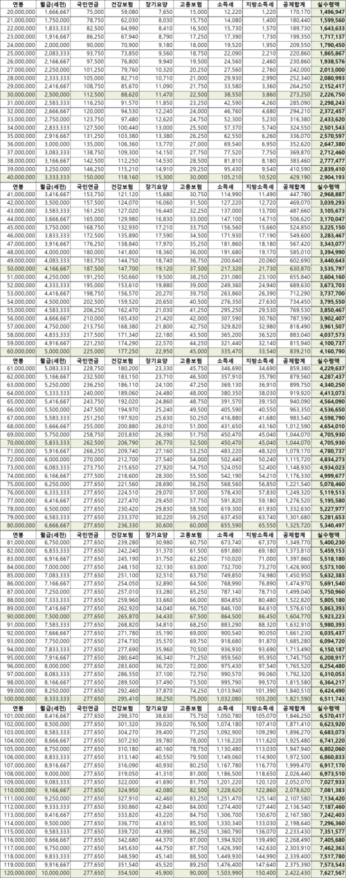 2025 연봉 실수령액표
