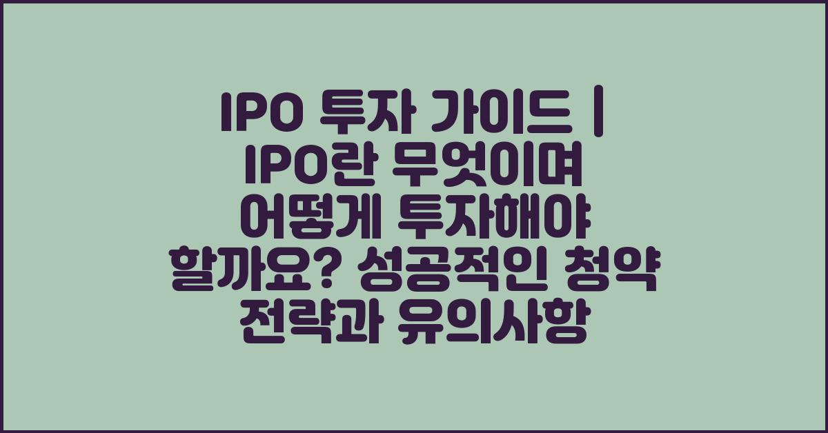 IPO 투자 가이드 | IPO란 무엇이며 어떻게 투자해야 할까요?에서 유의해야 할 사항들은 한두 가지가 아닙니다. 무엇보다도 IPO 투자에 앞서 증권사에서 제공하는 자료를 꼼꼼히 분석해야 합니다. 상장 기업의 재무상태, 성장 가능성, 사업 모델 등을 고려하는 것은 필수입니다.