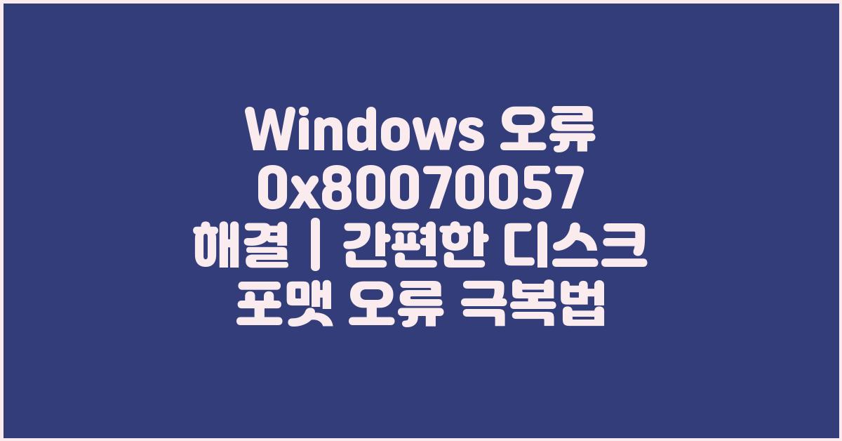 Windows 오류 0x80070057은 많은 사용자에게 알려진 흔히 발생하는 문제입니다. 이 오류는 대개 디스크 포맷 과정 중에 발생하며, 이 때문에 컴퓨터의 데이터 셋업이나 설치를 완료할 수 없게 됩니다. 디스크 포맷 오류의 주원인은 잘못된 데이터, 손상된 파일 시스템, 또는 하드웨어 문제와 같은 복합적인 요소들입니다. 문제점을 이해하고 적절한 해결법을 찾아보는 것은 중요합니다.